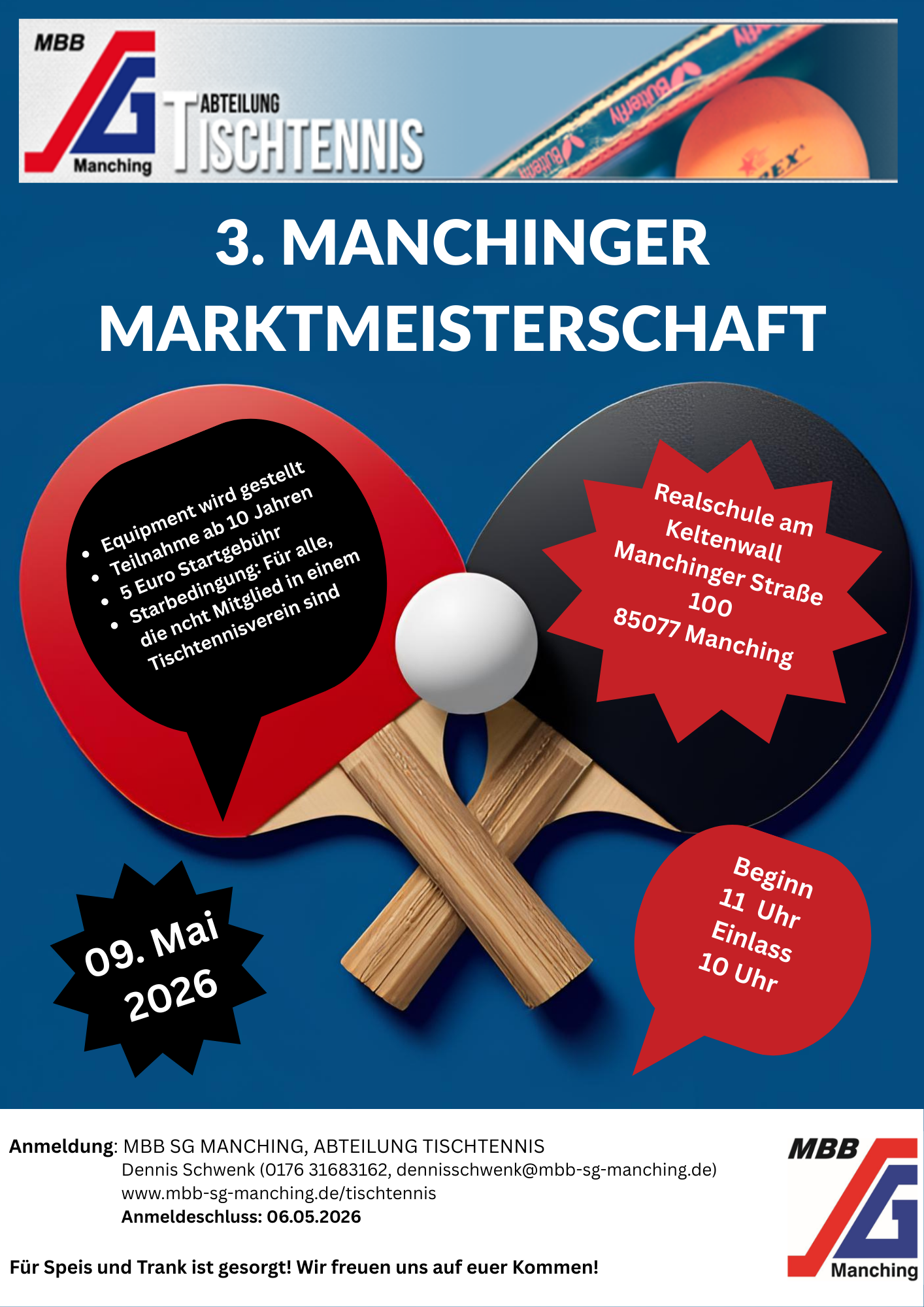 Unsere Kinder und Jugendlichen vom MBB SG Manching Tischtennis zeigen, wie viel Freude Sport machen kann. Ob beim Training, im Wettkampf oder beim gemeinsamen Feiern – hier erleben sie Teamgeist, Bewegung und echte Erfolgserlebnisse.